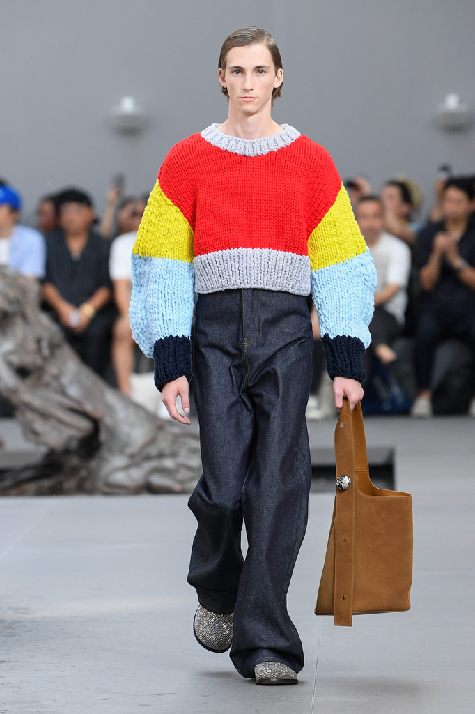Comme à son habitude, Jonathan Anderson, directeur artistique, nous a présenté une collection Loewe digne de ce nom à la Garde Républicaine. Longue et large pour le bas et de la brillance et des paillettes pour le haut. Les pantalons qui montent très haut sur les côtes et les couleurs choisies semblaient s'inspirer des années 60 et 70.